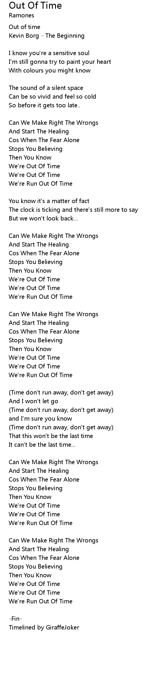 "Out Of Time" by The Rolling Stones Producer: Andrew Loog Oldham Composers: Mick Jagger and Keith Richards Lyricists: Mick . Out Of Time Lyrics are a subject that is being searched for and favored by netizens now. You can Get the Out Of Time Lyrics here. Download all royalty-free pic. The Weeknd - Out of Time (Lyrics), Subscribe and press ( ) to join the Notification Squad and stay updated with new uploads Follow The Weeknd: .